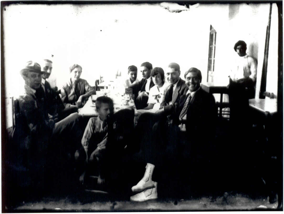 Aquesta fotografia és una meravella. Deixant aquest Joaquim Sunyer, tant el pare com la mare hi són i no hi són: són d’aquest món dels fills, però també d’un altre, més llunyà; el tal Torras sembla capficat en alguna cosa que no sé endevinar, i Pere, responsable i també reflexiu, entenimentat com potser sempre; Maria, enyoradissa, pensarosa, tan diferent de l’altra germana, la Rosa. I en Josep, fent equilibris entre la distància dels pares i aquest Junoy que, mudat amb coll i corbata com la gent de bé, però també calçat a la marinera, no se sap gaire de què està tan encantat. I, fent de comparses, el vailet del cap de taula i aquell xicot arrambat a la paret de la dreta. Una meravella, tants mons en un de sol.