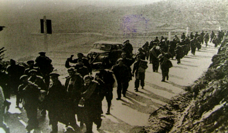 El viatge és curt, però arriscadíssim. Aquest matí les alarmes i els bombardeigs es multipliquen per aquella banda. Per la carretera trobem camions militars i civils, tancs, artilleria rodada, carros plens de mobles i de gent, i el dens i llastimós formigueig dels peatons. Hi ha als costats de la ruta un seguit de campaments –campaments de misèria i tristesa– alçats sota els pins o en camp ras.